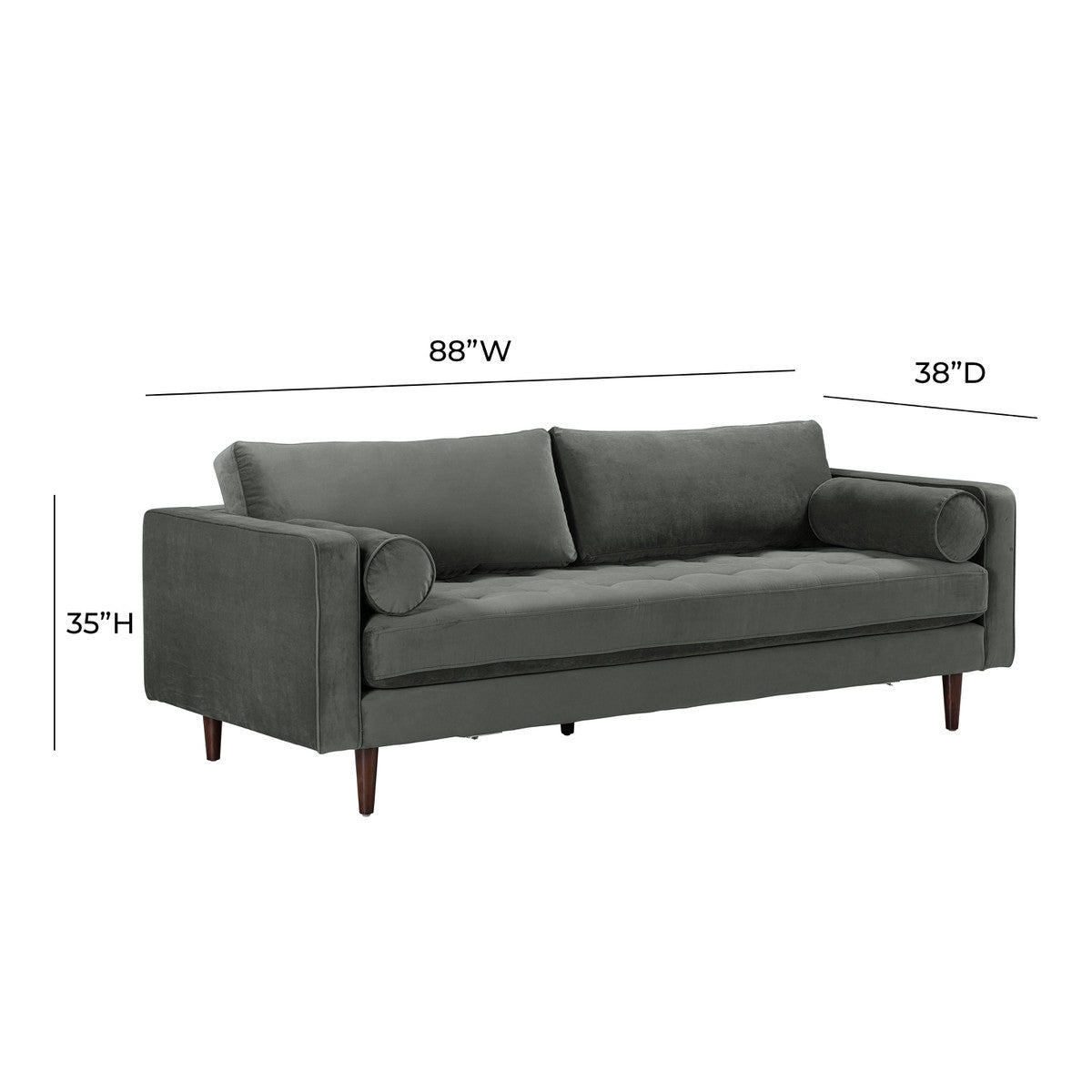 Part of the Cave Collection from TOV ClassicsDusty blue velvet upholsteryAlso available in sage green, burnt sienna, and ash gray velvetSofa and ottoman link together to create a sectionalAcacia, rubberwood and plywood frameRemovable Seat/Back CushionsHigh-gauge sinuous springs provide cushion supportSeat and back cushions are made with high-resilience foamLeg color: Brown