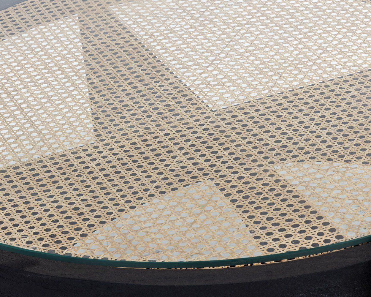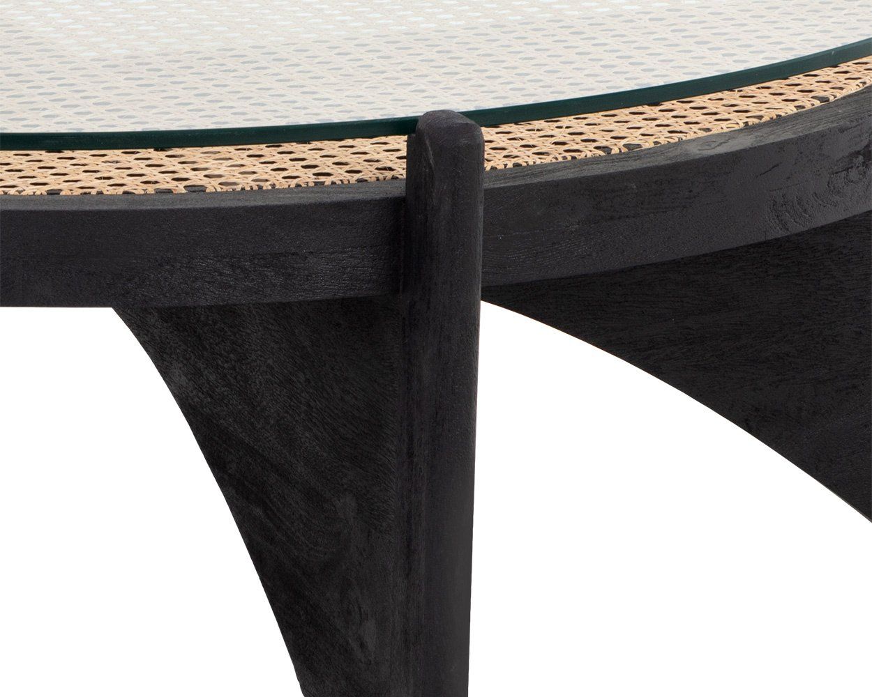 Glass, Black Mango Wood, Rattan