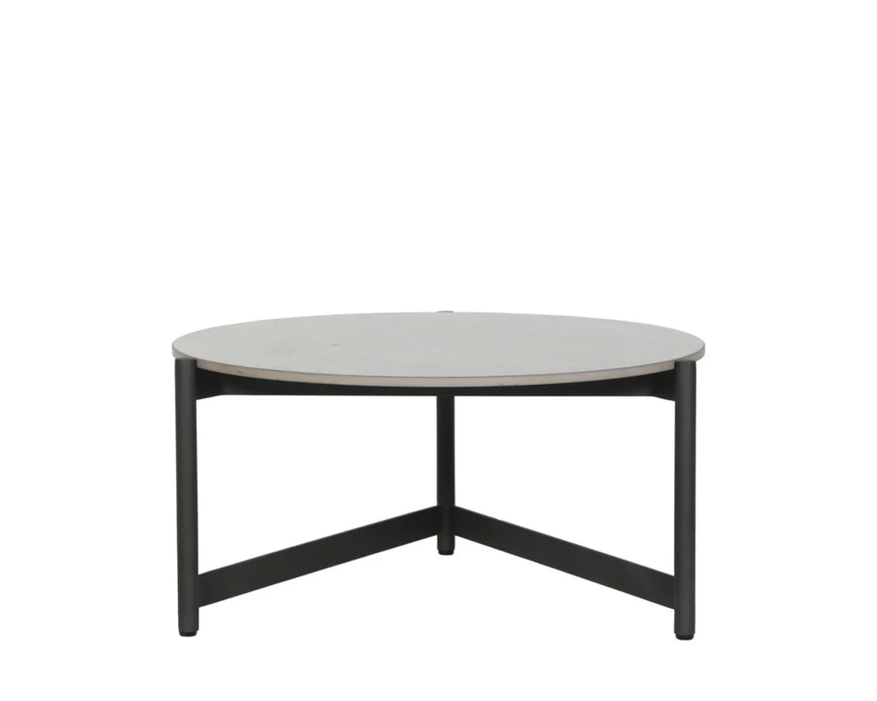 Complete your outdoor lounge with this modern coffee table from the Outdoor by SUNPAN collection. Features a black powder-coated aluminum frame and a grey ceramic top. Each ceramic top will look different, with unique variations of grey hues and veins that will enhance over time.